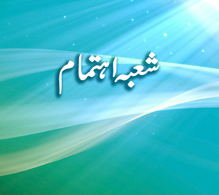 تمام ہی اداروں میں ”اہتمام‘‘ کا شعبہ سب سے کلیدی ہوا کرتا ہے، یہاں بھی اس کی وہی حیثیت ہے، یہ نظام مجلس شوریٰ کے تحت چلتا ہے، اور مدرسہ کے جملہ کلیدی امورمجلس شوریٰ کی منظوری کے بعد اور جزوی امور حضرات ذمہ داران ادارہ کی صواب دید پر انجام دئے جاتے ہیں، اس شعبہ سے منسلک اور دیگر شعبہ جات بھی ہیں مثلاً شعبۂ تعلیمات، شعبۂ محاسبی،شعبۂ تعمیرات اور شعبۂ مطبخ وغیرہ یہ تمام شعبے اہتمام سے جاری شدہ فیصلوں کے انعقاد و نفاذ اور انہیں عملی جامہ پہنانے میں مصروف ِ عمل رہتے ہیں۔